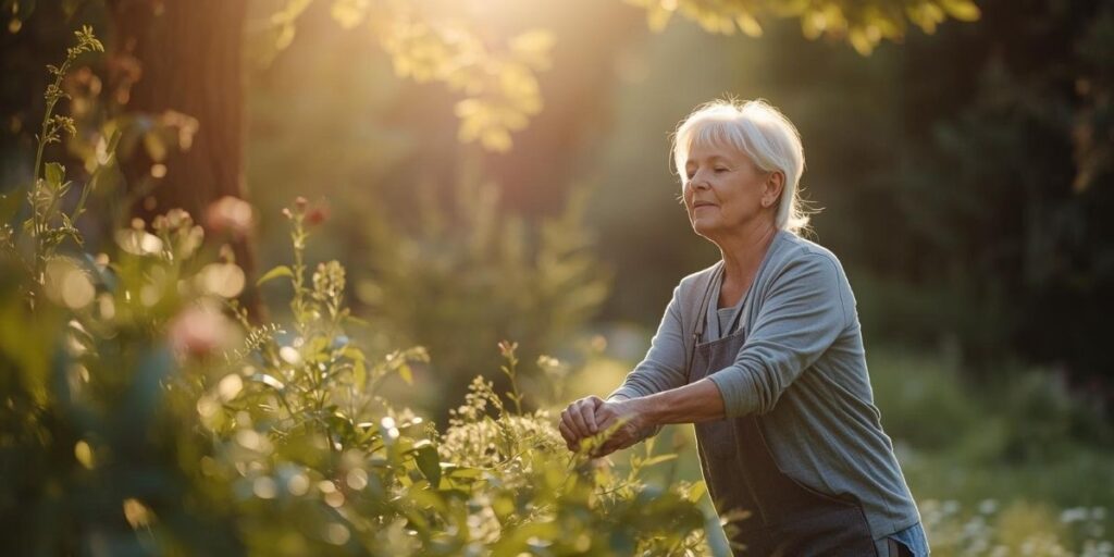 Különösen szép hangsúlyt kap a természetben végzett fizikai tevékenység, például a kertészkedés.